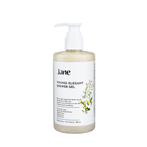 Quy trình làm sạch không đúng cách có thể vô tình phá vỡ hàng rào bảo vệ, đẩy nhanh quá trình lão hoá, khiến da dễ mất đi vẻ mịn màng. Vì vậy Jane đưa đến sản phẩm sữa tắm Youngi Elegant với công thức thiên nhiên an toàn, lành tính, được kết hợp bởi chiết xuất trà xanh, rau má, rễ dâu tằm và rễ cây thược dược cùng hoạt chất niacinamide, giúp tăng sức đề kháng, nuôi dưỡng và chống oxy hoá cho da, mang lại làn da sáng mịn và săn chắc hơn.